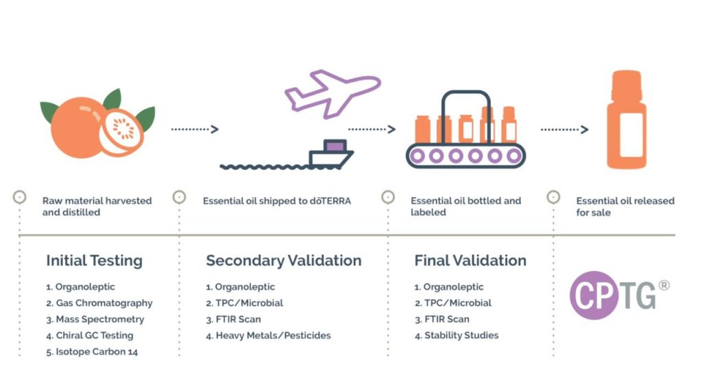 dōTERRA applique un ensemble de tests systématiques pour garantir un produit constant, pur et comparable d’un flacon à l’autre.